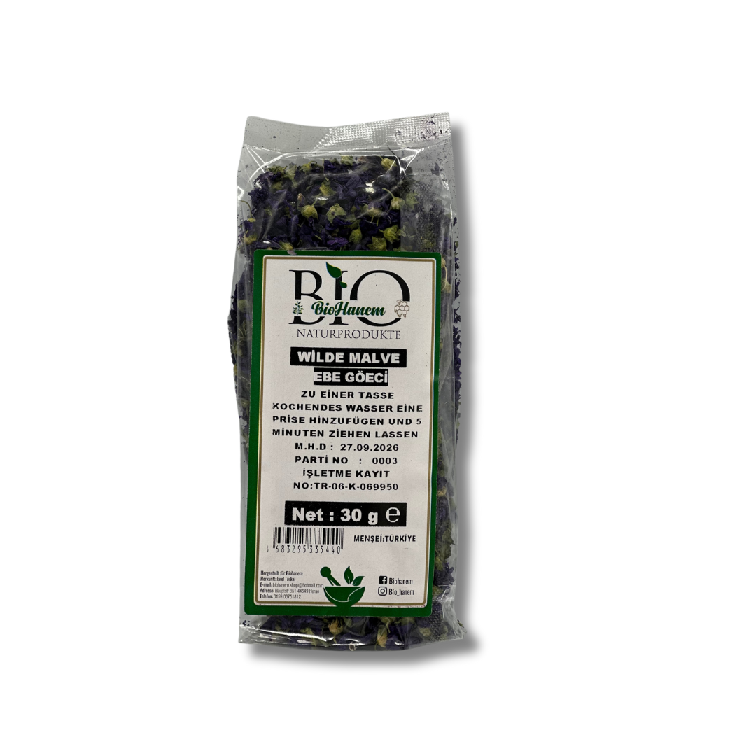 Erlebe die sanfte und vielseitige Ebe Göeci Wilde Malve in ihrer reinsten Form. Unsere sorgfältig getrocknete Wilde Malve bringt die Essenz der Natur direkt zu dir nach Hause. Jede 30g Packung enthält hochwertige Malvenblätter und -blüten, die für ihre sanften Aromen und vielfältigen Verwendungsmöglichkeiten bekannt sind.